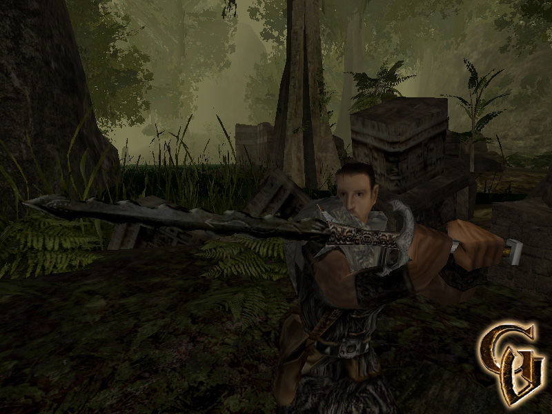 Hier stehe ich, der Held von Orkherrschaft und bin schon weit im einhändigen Kampf ausgebildet und allgemein weit fortgeschritten. Ich bewege mich auf Mogambo zu, der in der Vollversion mit einer neuen Rüstung und 2 auf dem Rücken überkreuzten Einhandschwertern bewehrt ist. Dank dem passiven Zwei-Klingen-Talent, das mir Mogambo gerade beigebracht hat, kann ich das nun auch. Der Doppelwaffenkampf mit der G2-Engine ist geboren, so wie man ihn aus dem dritten Gothicteil kennt. Ich habe später auch herausgefunden, dass etwa zeitgleich mit uns und völlig unabhängig voneinander nur sehr wenige Modteams etwas Vergleichbares erreicht haben und jeder hat so sein eigenes System kreiert. Viel Glück wünschen wir auch ihnen, da das ja hier kein Konkurenzkampf ist.