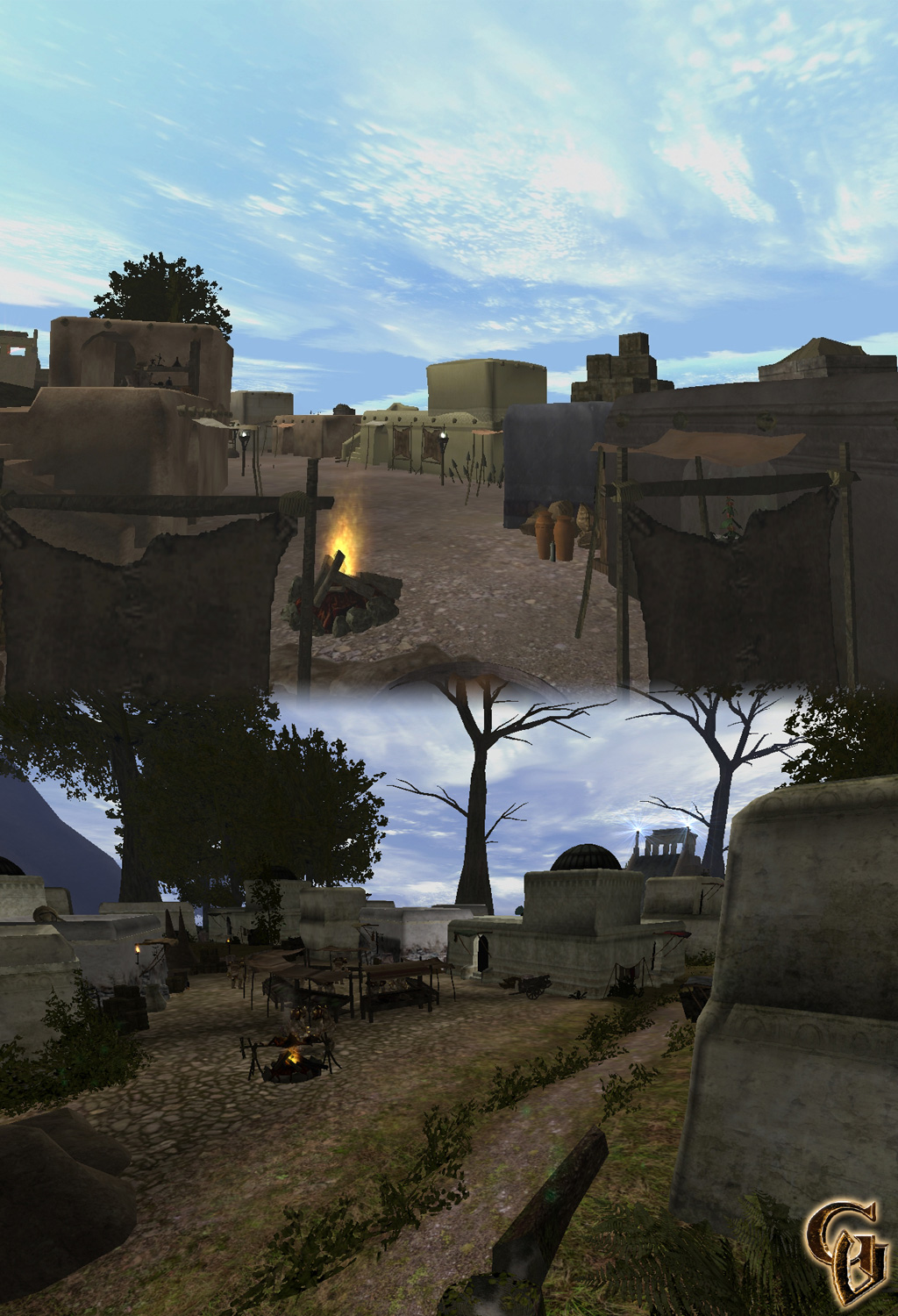 Wichtig war es uns vor allem bei der Gestaltung der Welt gewisse Themen vorzugeben. So quillt jedes Regal im Tempel über mit alten Büchern und Schriftrollen, Schatullen und Tränken mit geheimnisvollen Ingredienzien. Das Fischerdorf ist sehr ärmlich gestaltet. Überall liegen lose Bretter herum, stehen Kisten und Fässer an Häuserwänden. Bei der Gestaltung der Orkstadt sind wohl die größten Probleme bezüglich des Themas entstanden. Vor allem dadurch, dass die Orks in der Gothicreihe größtenteils als barbarische und niedere Rasse dargestellt werden, dies aber nach unserer Geschichte zu dem Zeitpunkt, wo der Prolog spielt, noch kaum ausgeprägt ist und wir so regelrecht eine neue Kultur erschaffen mussten. Aber ich denke, wir haben diese Aufgabe sehr gut be- und durchstanden.