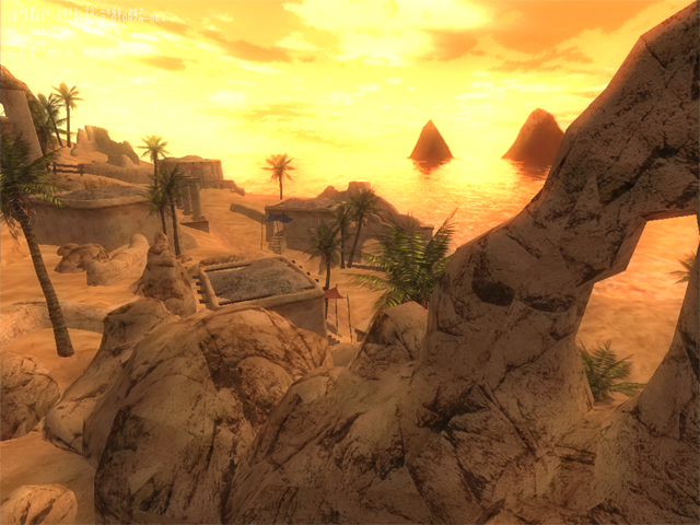 Dabei handelte es sich tatsächlich um einen Screenshot aus der Blitz3D Engine. Gezeigt wurde das Wüstendorf "Nahermia" in unserer ersten Techdemo zum eigenständigen Hauptspiel Toihlsa.