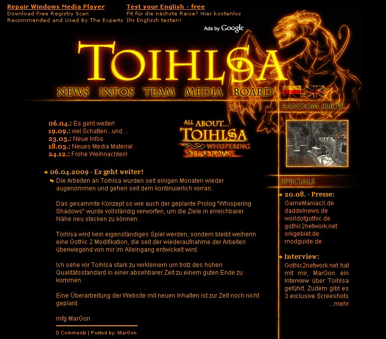 Und da nun nur noch an Toihlsa als Gothic II Modifikation gearbeitet wird und ihn sowieso schon ein paar Leute gesehen haben, hab ich ihn Dir und Deinen Lesern auch noch mal mitgebracht.