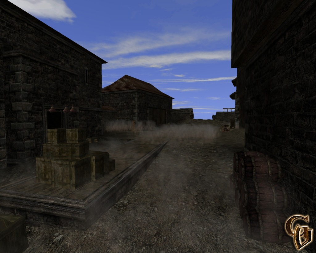 Es ist soweit - behutsam treten wir aus dem Haus der Feuermagier und ziehen langsam die frische Luft in unsere Lungen. Ein Blick verrät uns, dass wir inmitten der Burg des Alten Lagers im Minental stehen. Nebel hängt in der Luft, lässt die Spannung ins Unendliche steigen, die jede Faser unseres Körpers zu durchdringen scheint. Dann ertönt klirrendes Metall in der Luft, getragen wie von Engelsflügeln und wir wissen, was uns jetzt bevorsteht.