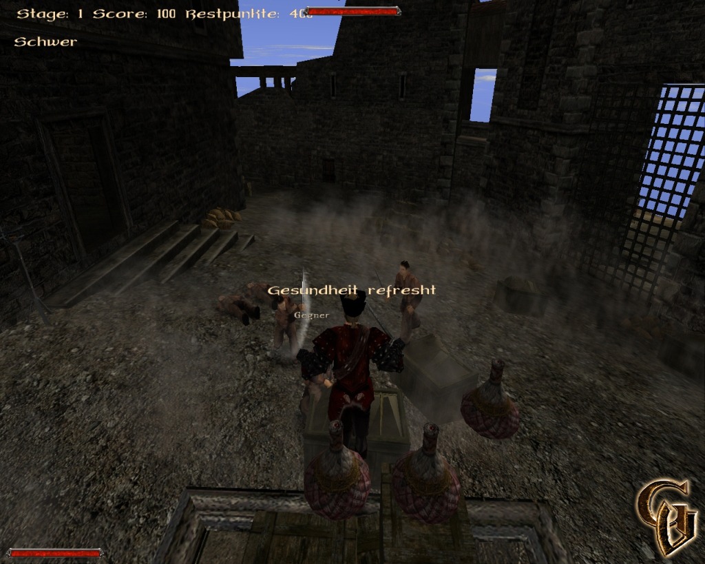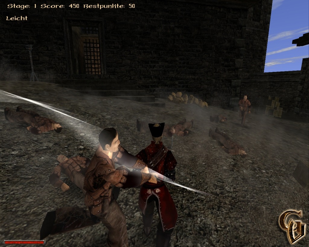 Zwei verschiedene Level hält die kleine Modifikation für uns bereit. Neben der bereits bekannten Burg aus dem Minental gibt es ein ebenfalls burgähnliches Gebäude als zweiten Schauplatz. Gekämpft wird jeder gegen jeden. Der Spieler erhält Punkte für jeden erfolgreichen 'Knock Out' und kann sich so über viele verschiedene 'Stages' nach oben spielen. Eine schwerer wie die andere fordern sie den Spieler selbstverständlich zunehmend mehr, der aber im weiteren Spielverlauf an bessere Ausrüstung gelangen kann. Besonders gelungene Momente im Kampf werden durch einen 'Berserk-Modus' belohnt, in dem man mit deutlich mehr Masse seinem Gegner gegenübertreten kann.
